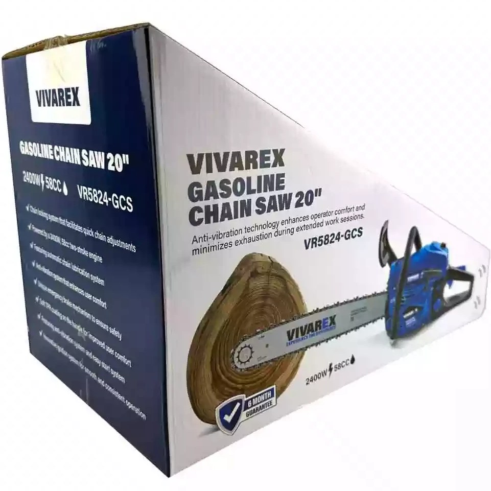 اره زنجیری ویوارکس VR5824-GCS یک ابزار بنزینی دو زمانه با موتور قدرتمند ۵۸ سیسی و توان معادل ۳.۲ اسب بخار است که برای برشهای سنگین طراحی شده است.این مدل دارای ساطوری با طول استاندارد ۵۰ سانتیمتر (۲۰ اینچ) است که امکان برش تنه درختان قطور را فراهم میکند و سرعت گردش زنجیر آن تا ۱۱۰۰۰ دور در دقیقه میرسد.برای افزایش ایمنی کاربر، مجهز به ترمز ایمنی اینرسیای (اینرتینا) است که در مواقع خطر یا لگد زدن (Kickback) به سرعت فعال شده و زنجیر را متوقف میکند.این دستگاه با وزن تقریبی ۵.۸ کیلوگرم و دستههای ارگونومیک ضد لرزش برای استفاده در کارهای حرفهای و نیمهحرفهای جنگلداری و هرس درختان سنگین مناسب است.
